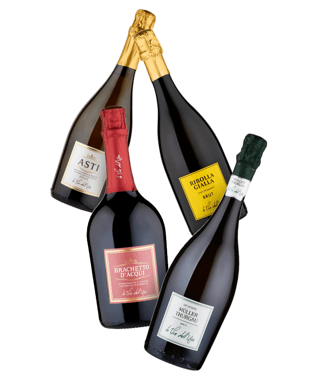 È sempre festa quando, per i tuoi brindisi, scegli gli spumanti con l’etichetta Le Vie dell’Uva. Una vasta gamma di bottiglie realizzate con metodi differenti, dal Classico allo Charmat, che comprendono i prodotti brut e quelli dolci, senza dimenticare il Brachetto d’Aqui, sempre più apprezzato per le sue caratteristiche organolettiche uniche e il colore rosato.